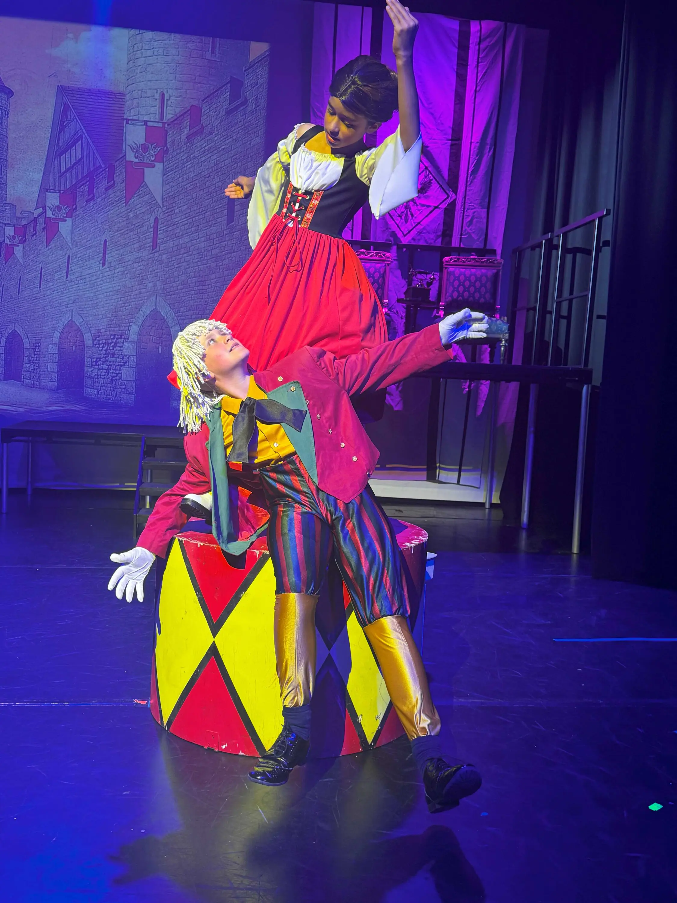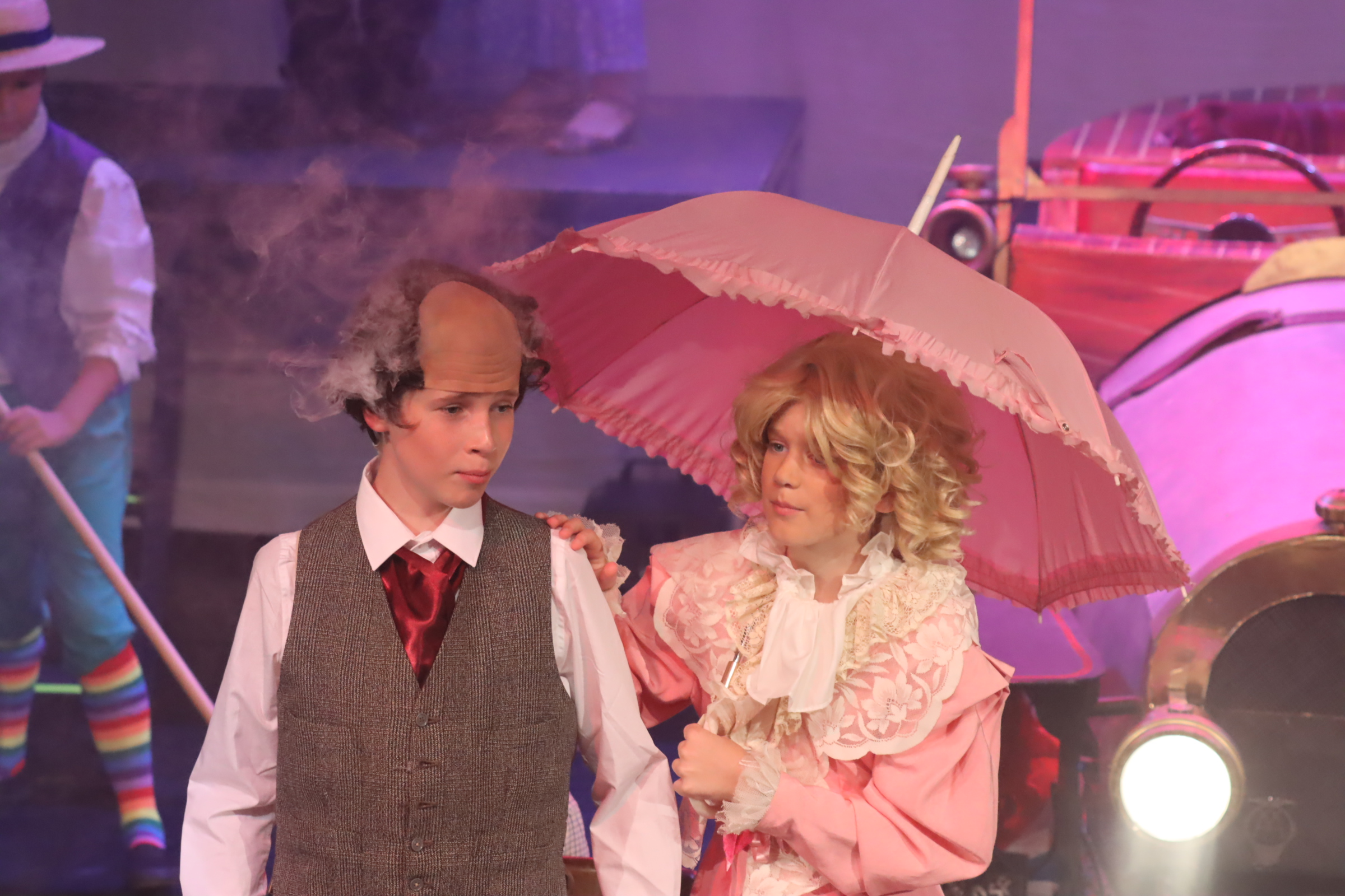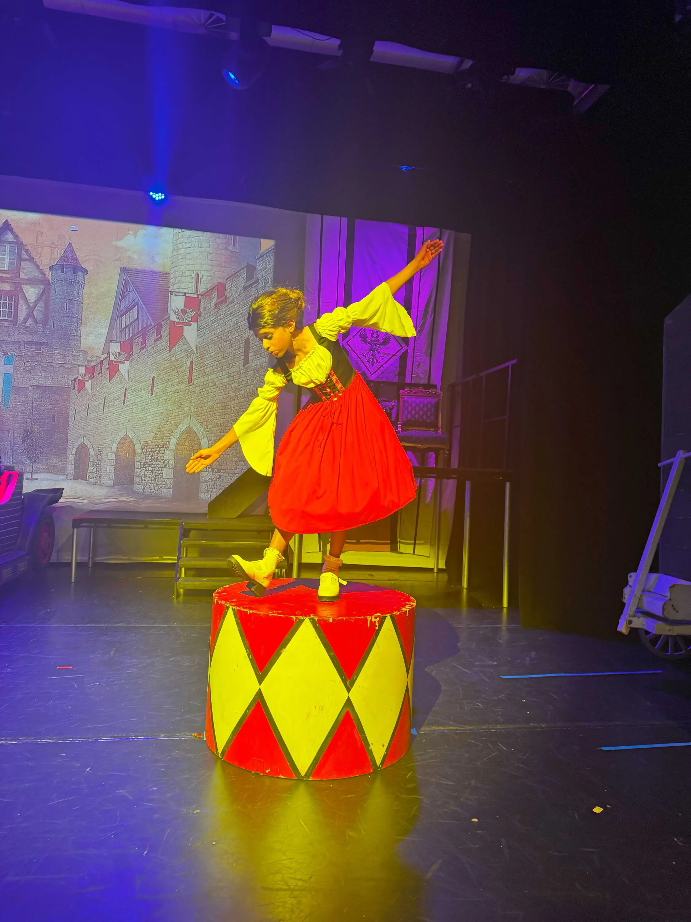 As the rehearsal week kicked off, energy levels soared with the arrival of Chitty herself – the magical, magnificent car that stole the show. It soon became a whirlwind of activity: tech run-throughs, fine-tuning special effects, and making sure every set transition and spotlight was perfectly timed. The set transformed daily, buzzing with crew, costume fittings, and last-minute prop polishing. It was a logistical feat, but the atmosphere crackled with anticipation – and we will never forget the gasps of delight when Chitty first flew on the stage”.