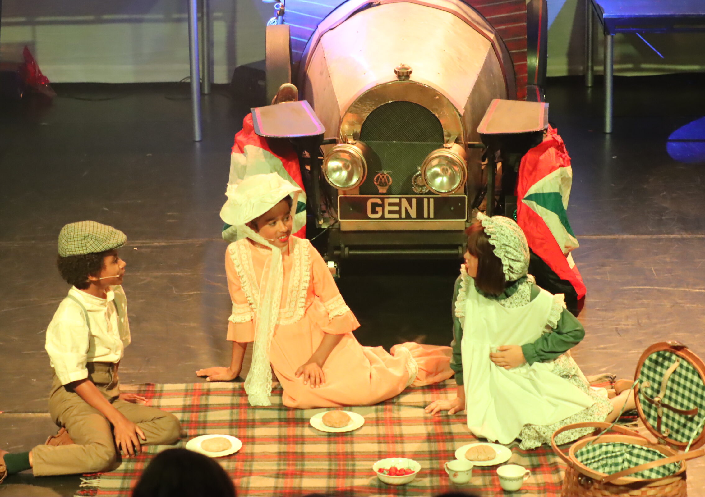 “The boys tackled the high-speed choreography of Me Ol’ Bamboo (yes -complete with sticks!) and dove into the vibrant rhythms of Year 6 parent, Rebecca Sachdev’s dazzling Bombie Samba. The Barons and Baronesses had us in stitches, bossing around the hapless spies and creating delightful chaos on stage. The Potts family took us on an unforgettable journey – one that made us laugh, tugged at our heartstrings, and left us all dreaming of a ride in that magical car. And who could forget the spine-tingling appearance of the Child Catcher – creeping across the stage with his giant sweety cart in tow? I think it’s safe to say we all breathed a collective sigh of relief (and maybe even cheered) when he was finally wheeled off… in a giant cake, no less! What began as a gentle warm-up quickly revved into a full-throttle sprint toward showtime.