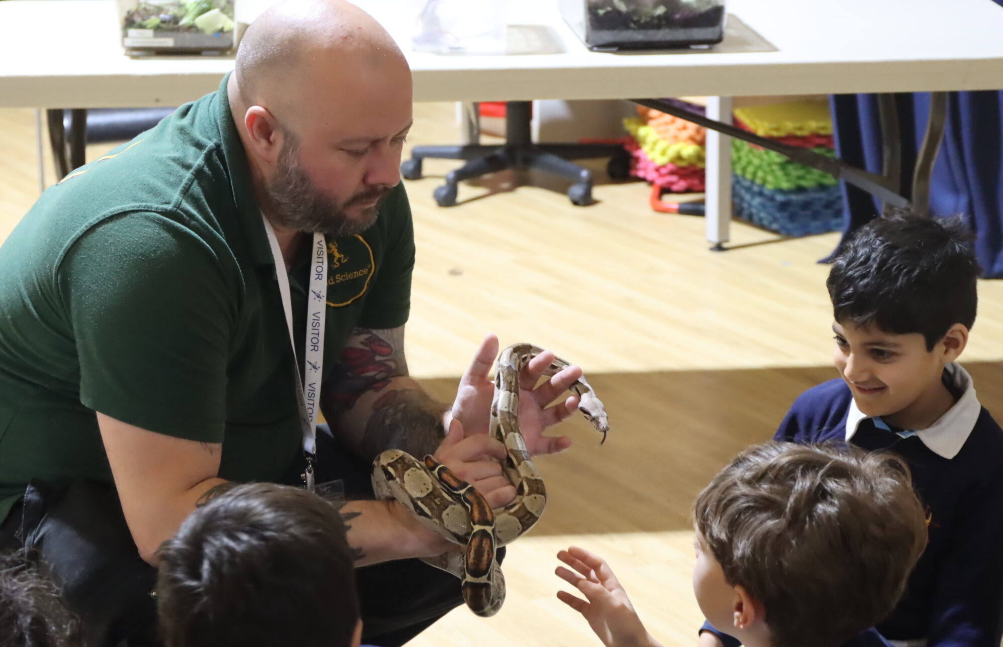 To support this learning, both years received a special visit from Wild Science on Tuesday 24th March. Robert, the Wild Science visitor, brought in a range of different animals and taught the boys some incredible facts about each of them. Our Pre-Prep boys were delighted to get up close to giant snails, lizards, scorpions, tarantulas, cockroaches and snakes. They even got to stroke a python and a boa constrictor! This visit set the boys nicely with great enthusiasm on their new topic and has inspired many to learn some more facts about the creatures they saw. A particular favourite was the leopard gecko and the tarantula, as they learnt how these animals hunt and hide from predators in very different ways.